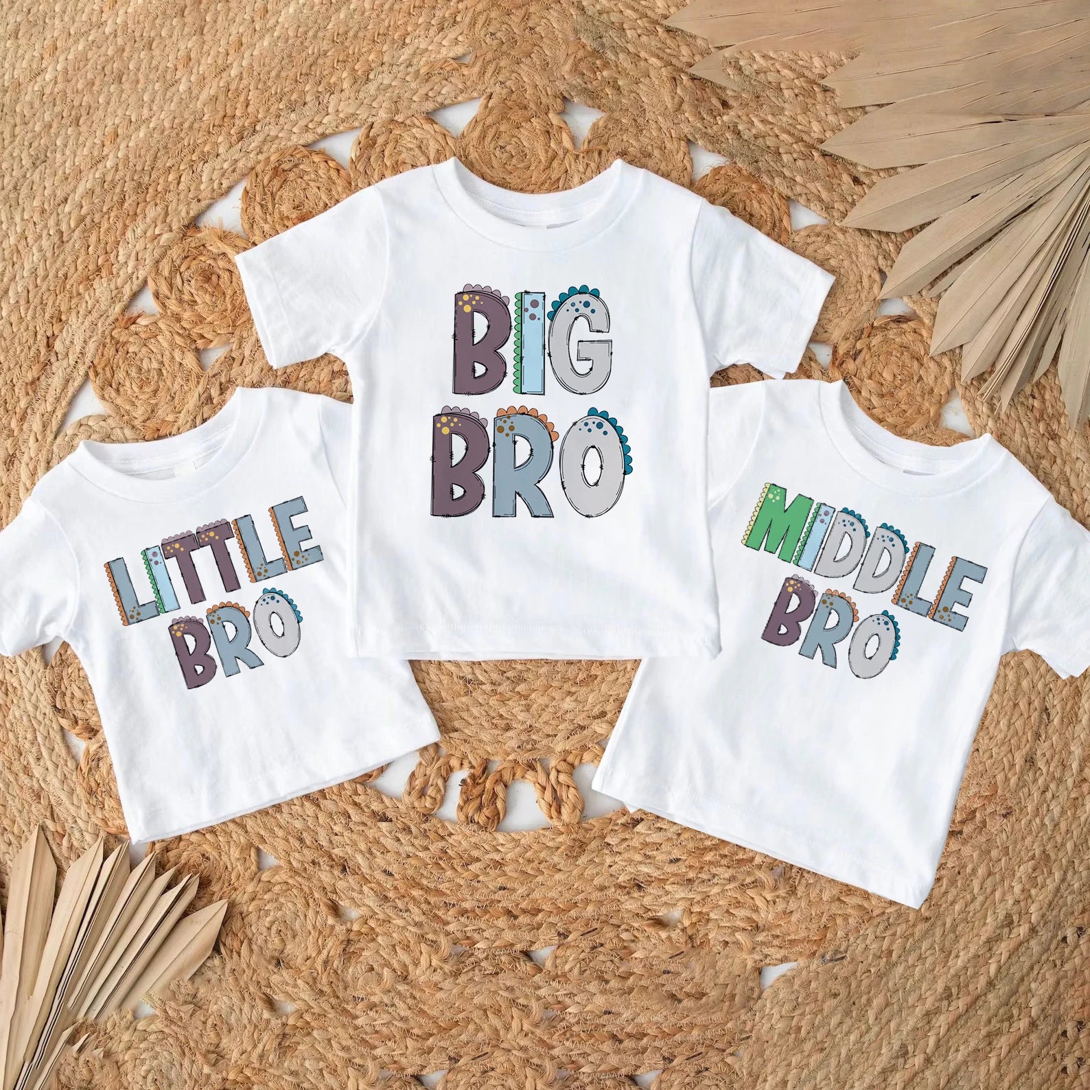 Big Middle Little Brother Print Family Matching T-shirt Boys Sibling Shirt Child Summer Tee Clothes Kids Short Sleeve Outfit Top