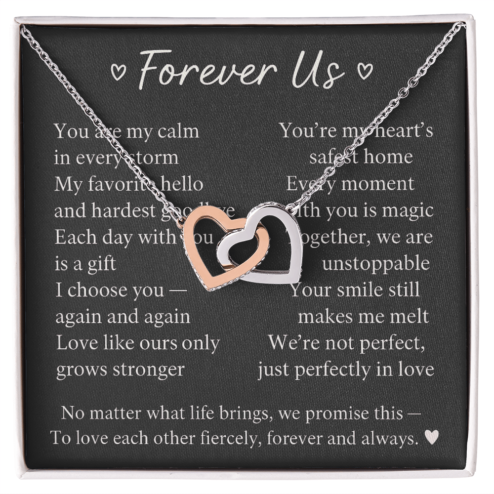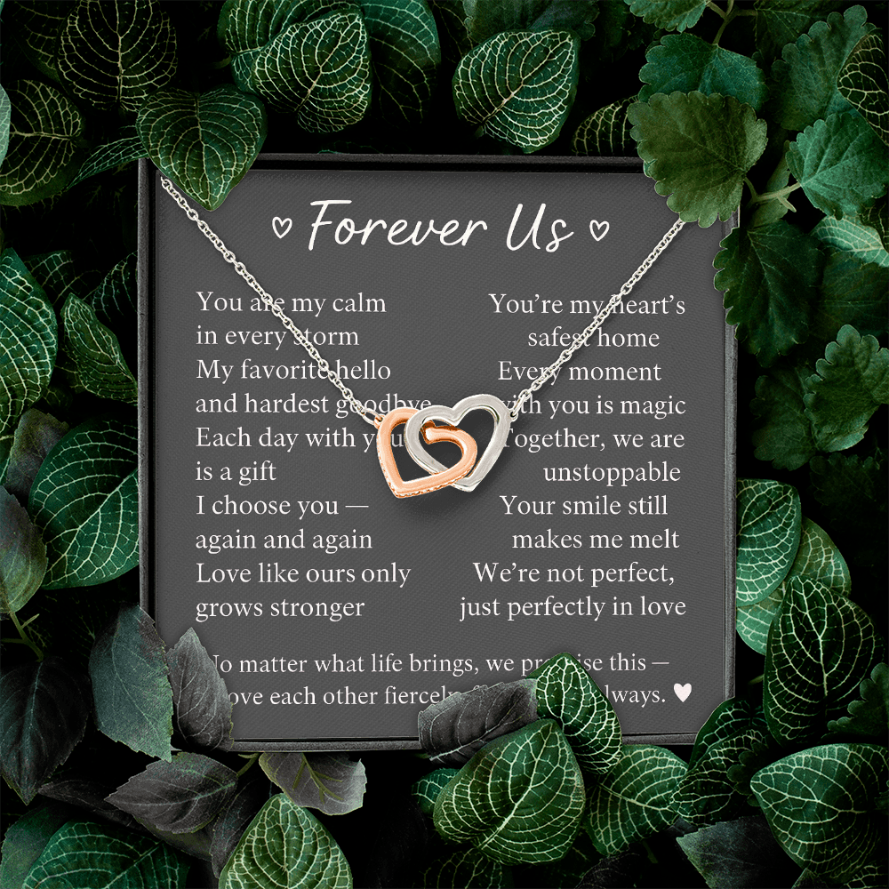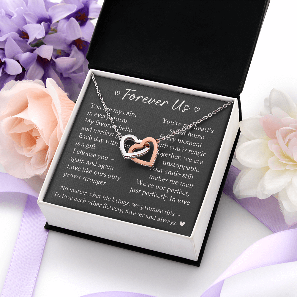 Give her the gift that symbolizes your never-ending love. Featuring two lovely hearts embellished with cubic zirconia crystals, this Interlocking Hearts necklace is the perfect accessory for everyday wear. Whether it's a memorable anniversary or a special birthday, make sure to dazzle your special someone by gifting them this stunning necklace.