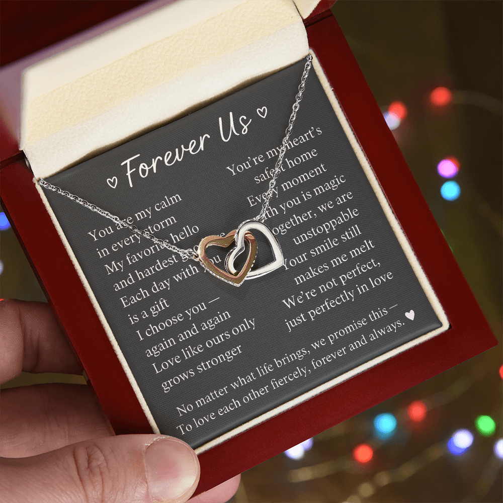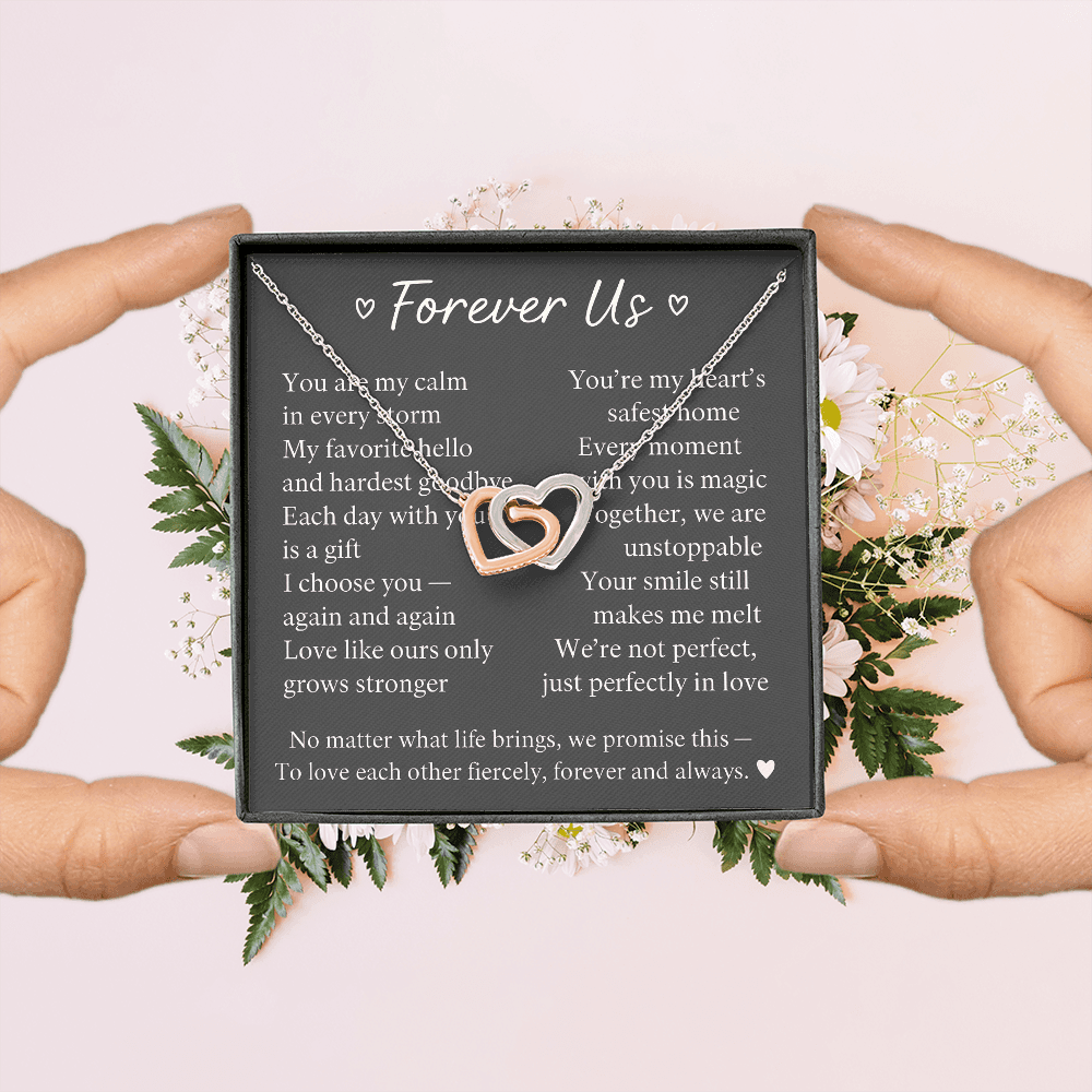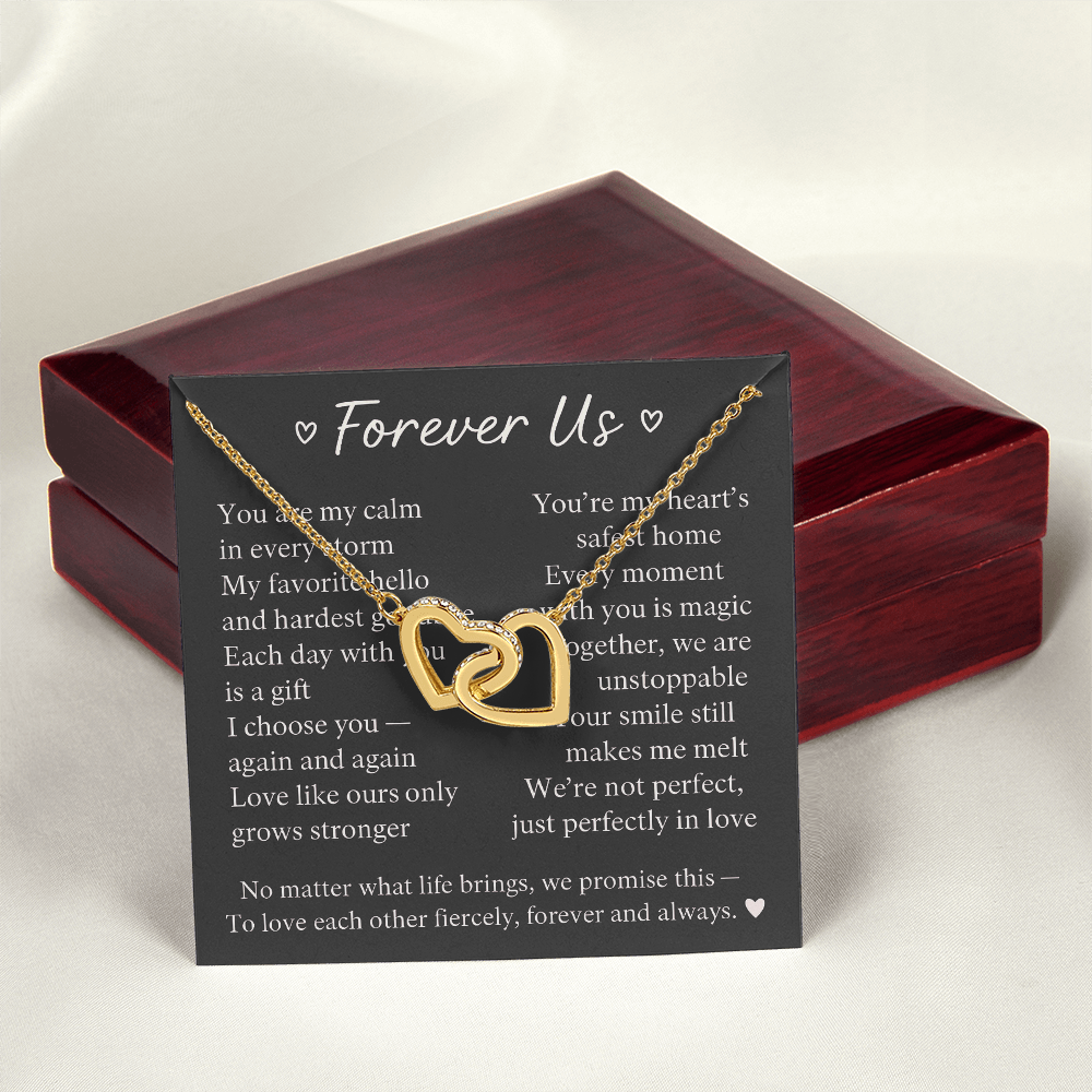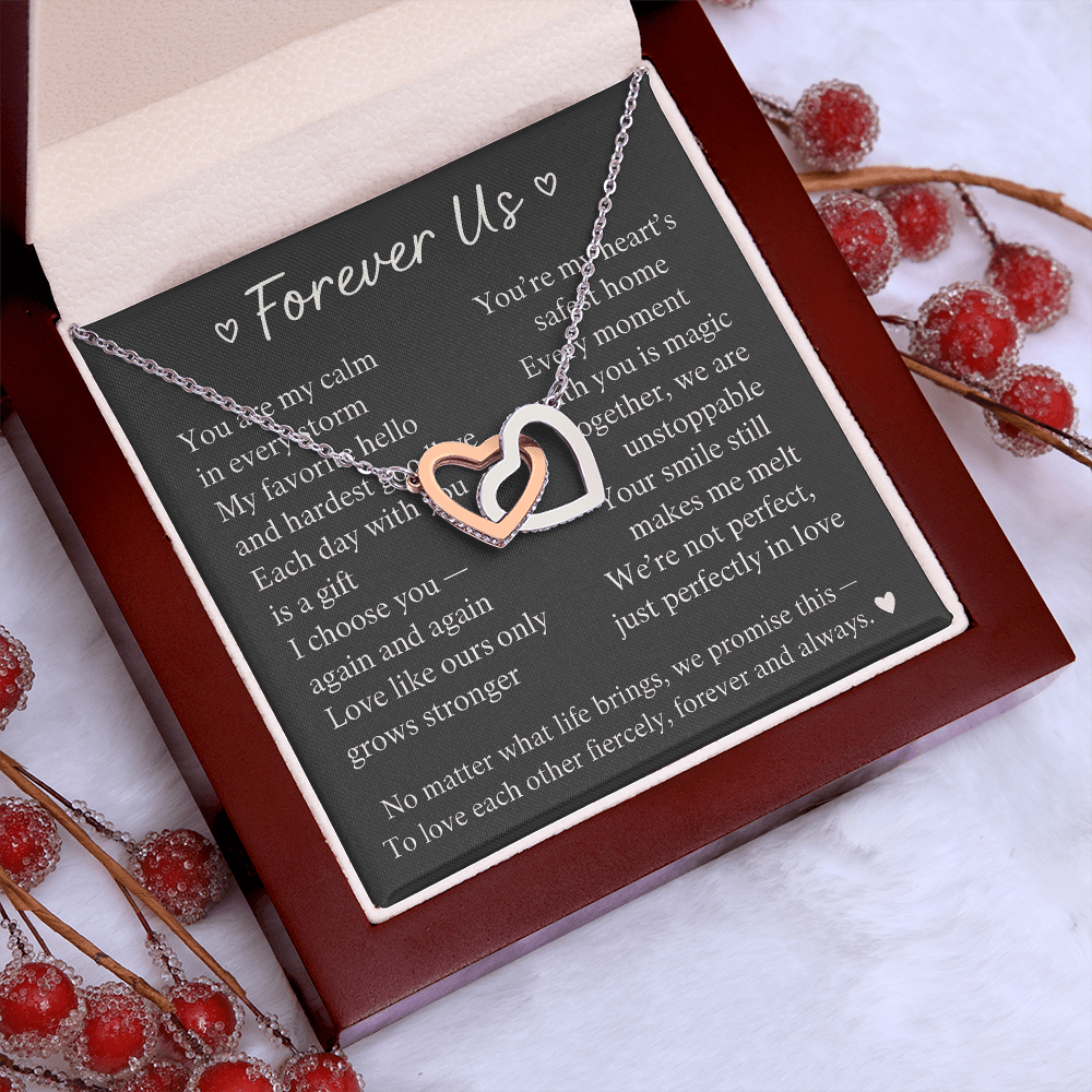 Give her the gift that symbolizes your never-ending love. Featuring two lovely hearts embellished with cubic zirconia crystals, this Interlocking Hearts necklace is the perfect accessory for everyday wear. Whether it's a memorable anniversary or a special birthday, make sure to dazzle your special someone by gifting them this stunning necklace.
