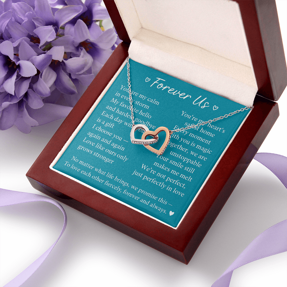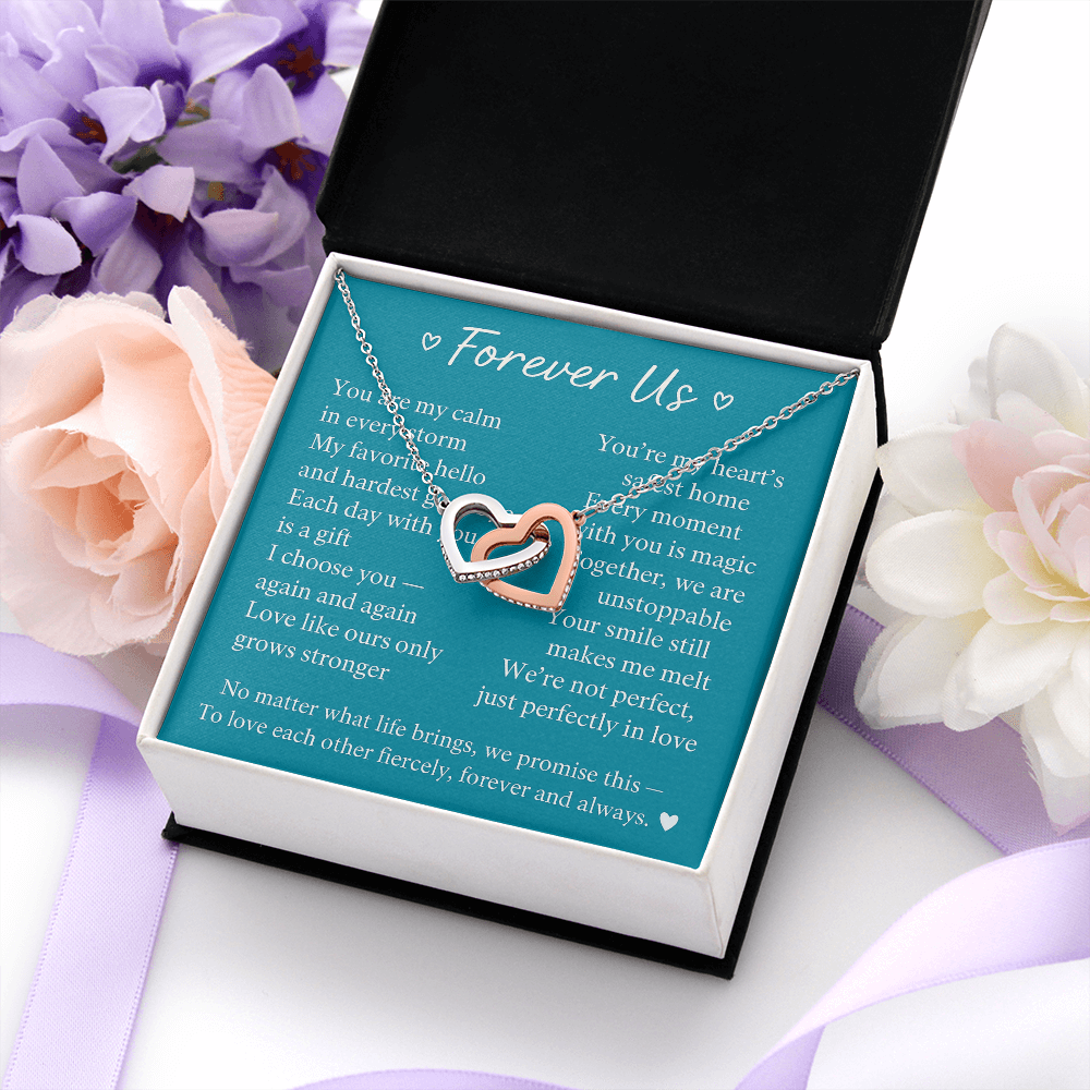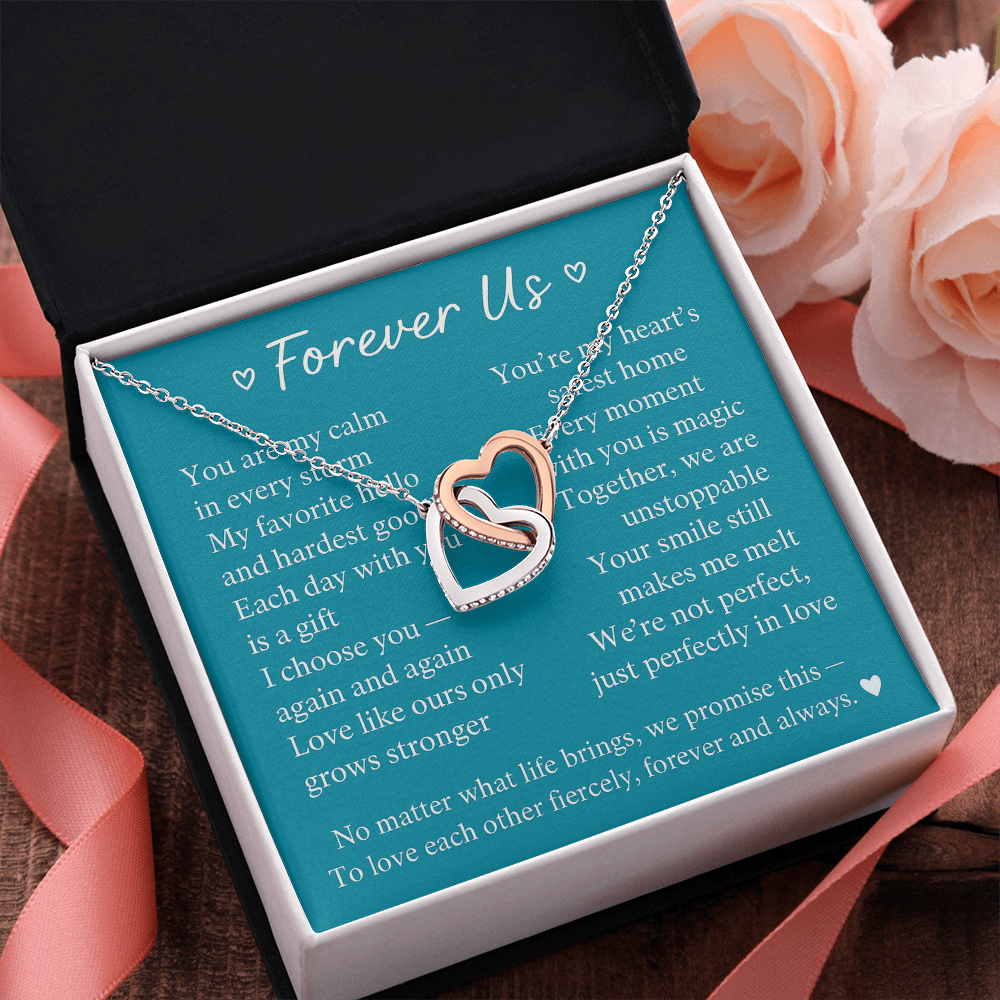 Give her the gift that symbolizes your never-ending love. Featuring two lovely hearts embellished with cubic zirconia crystals, this Interlocking Hearts necklace is the perfect accessory for everyday wear. Whether it's a memorable anniversary or a special birthday, make sure to dazzle your special someone by gifting them this stunning necklace.