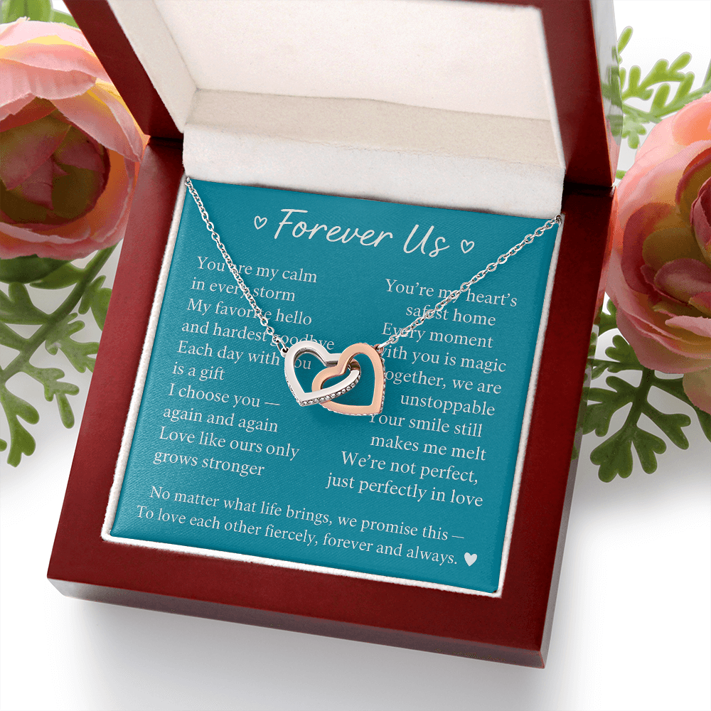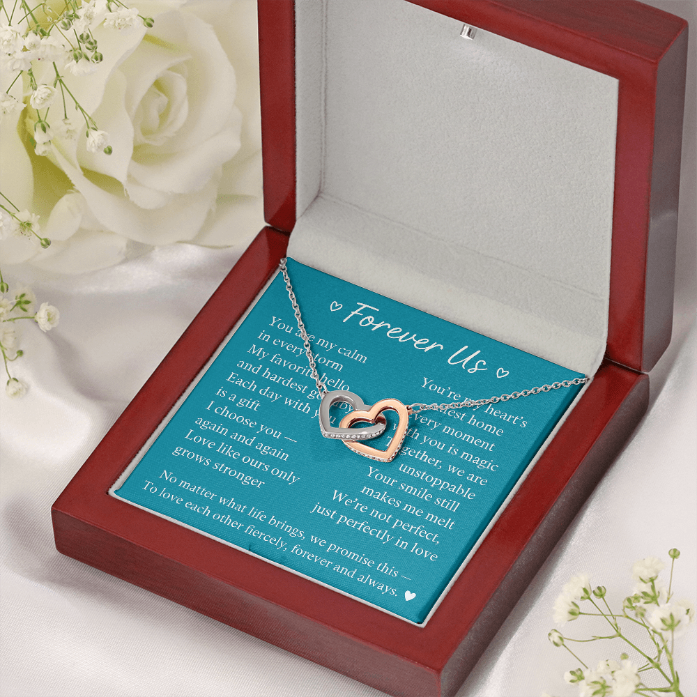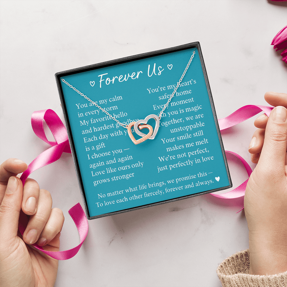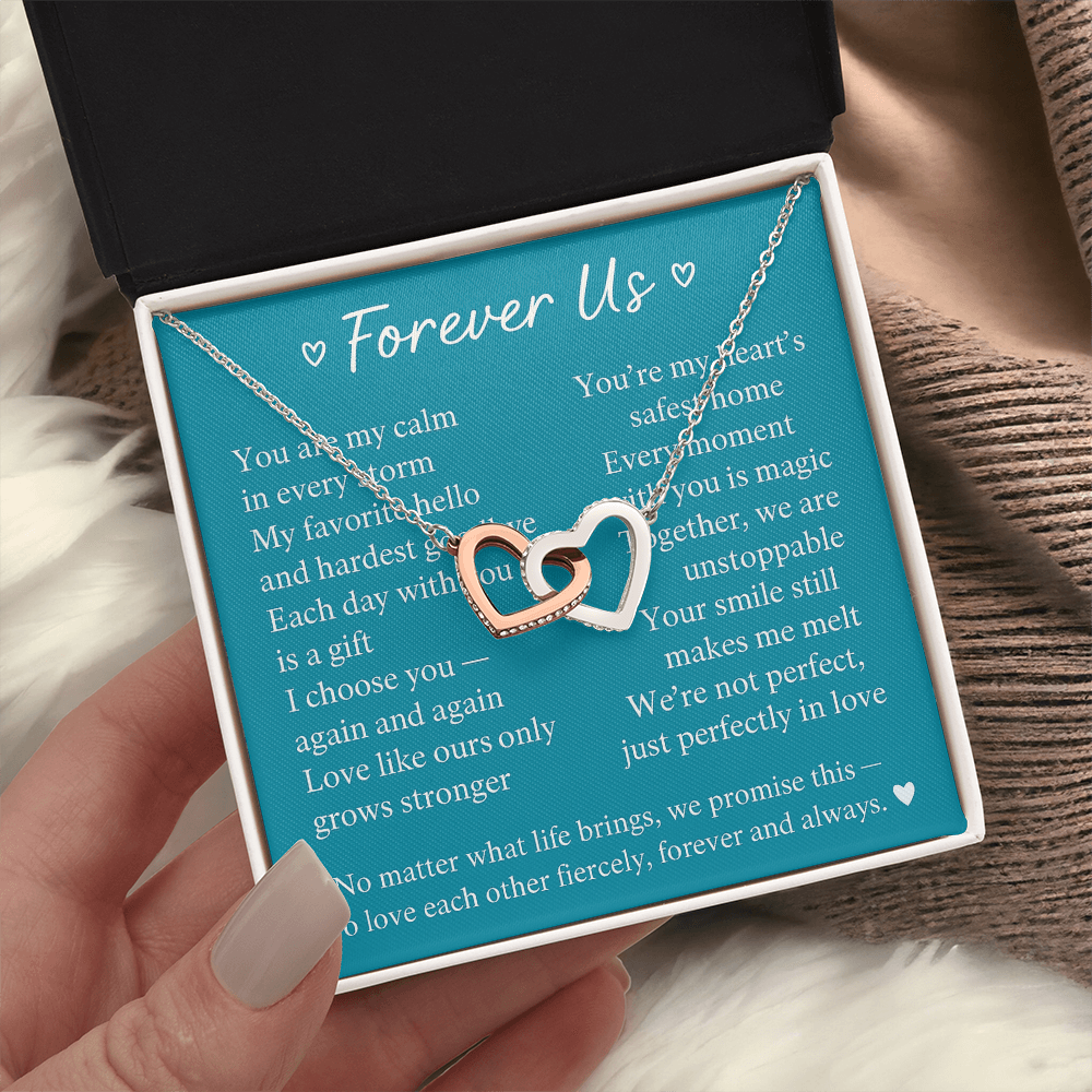 Give her the gift that symbolizes your never-ending love. Featuring two lovely hearts embellished with cubic zirconia crystals, this Interlocking Hearts necklace is the perfect accessory for everyday wear. Whether it's a memorable anniversary or a special birthday, make sure to dazzle your special someone by gifting them this stunning necklace.