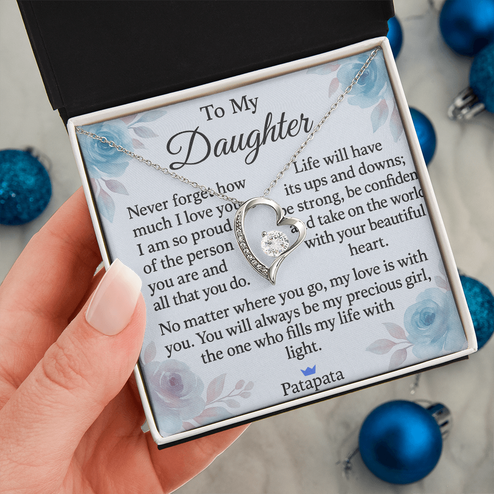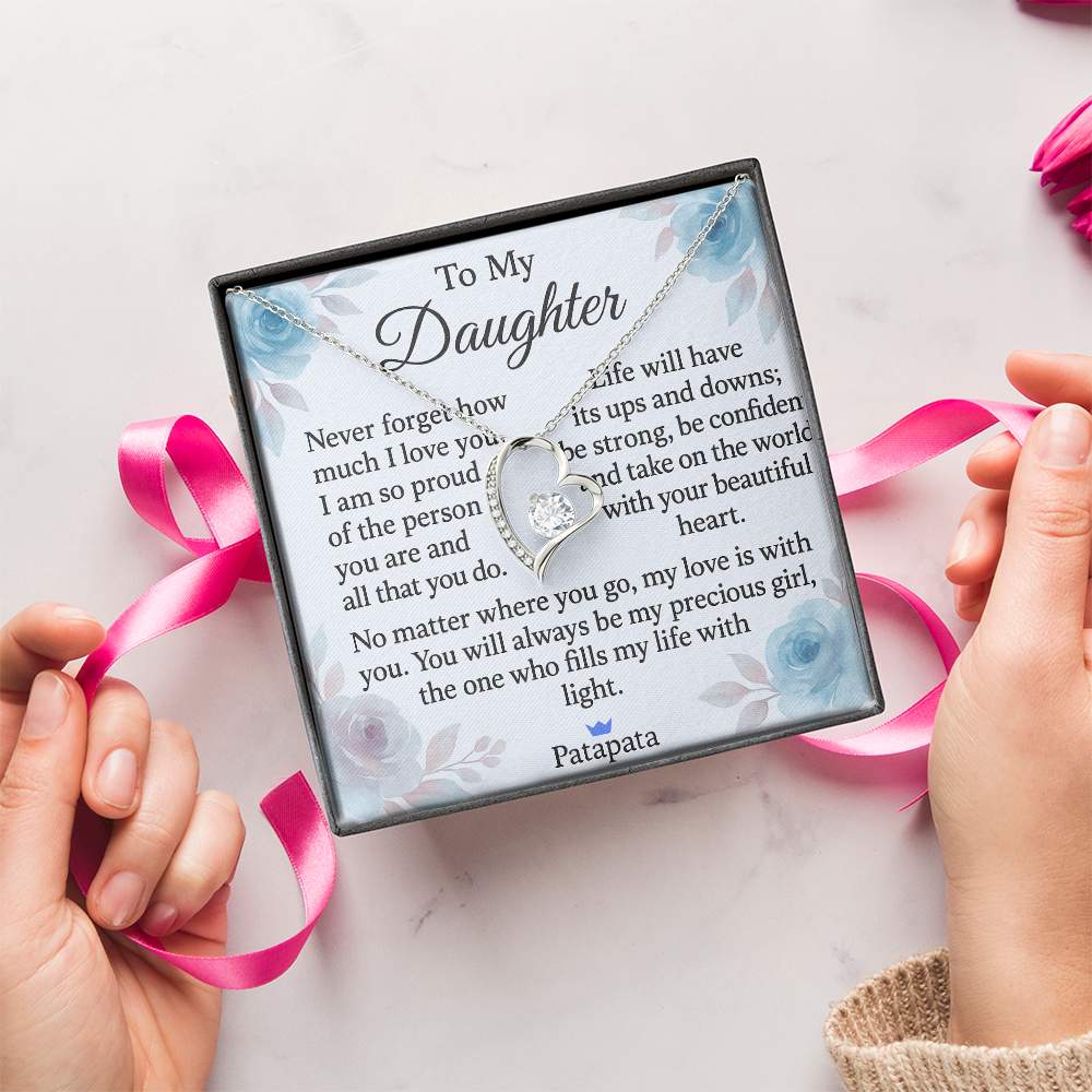 The dazzling Forever Love Necklace is sure to make her heart melt! This necklace features a stunning 6.5mm CZ crystal surrounded by a polished heart pendant embellished with smaller crystals to add extra sparkle and shine. Beautifully crafted with either a white gold or yellow gold finish, be sure to give her a classic gift she can enjoy everyday.