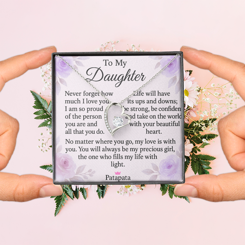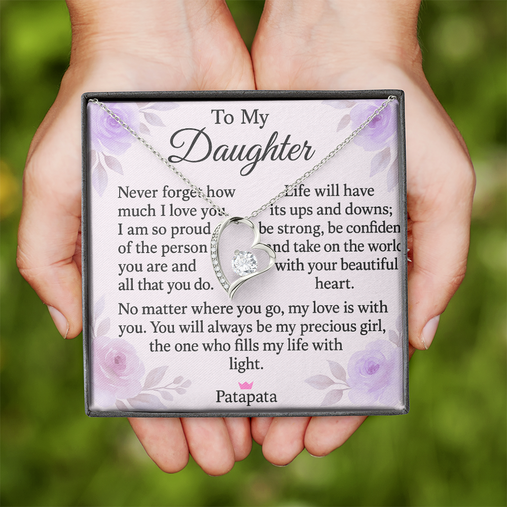 The dazzling Forever Love Necklace is sure to make her heart melt! This necklace features a stunning 6.5mm CZ crystal surrounded by a polished heart pendant embellished with smaller crystals to add extra sparkle and shine. Beautifully crafted with either a white gold or yellow gold finish, be sure to give her a classic gift she can enjoy everyday.
