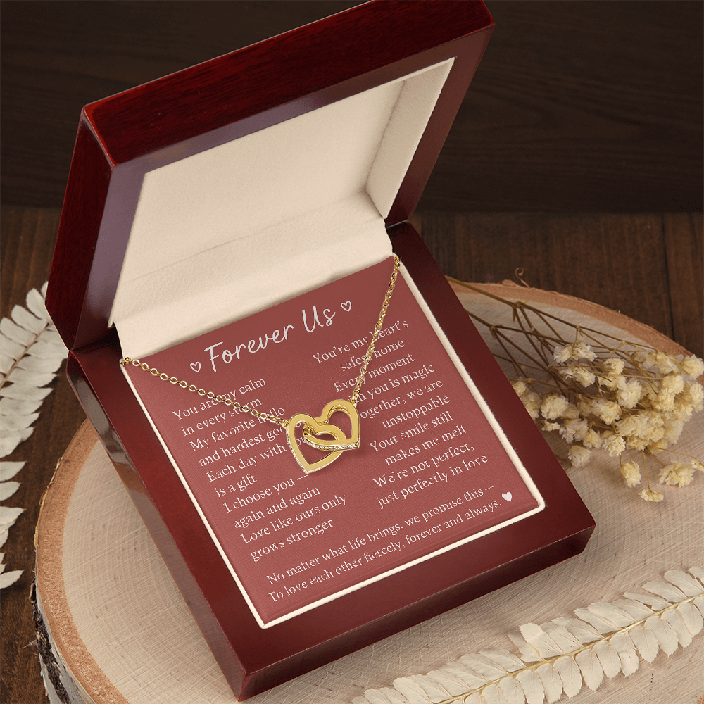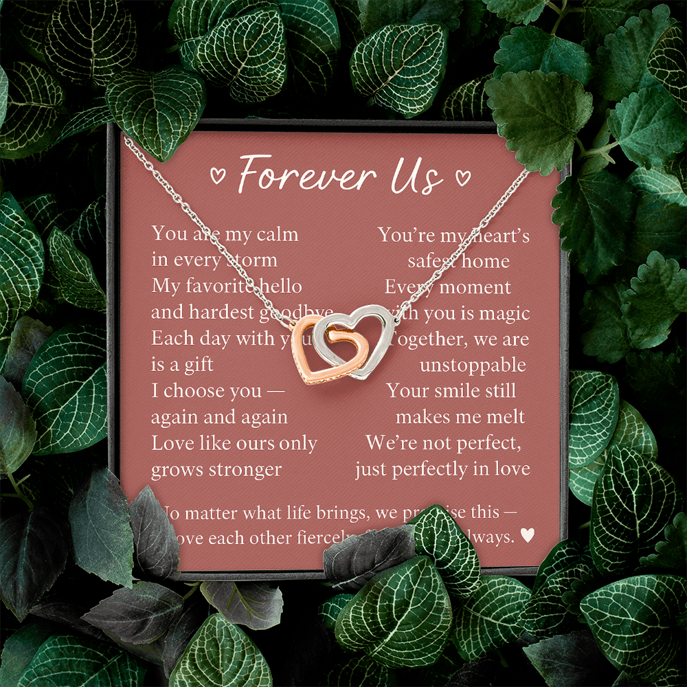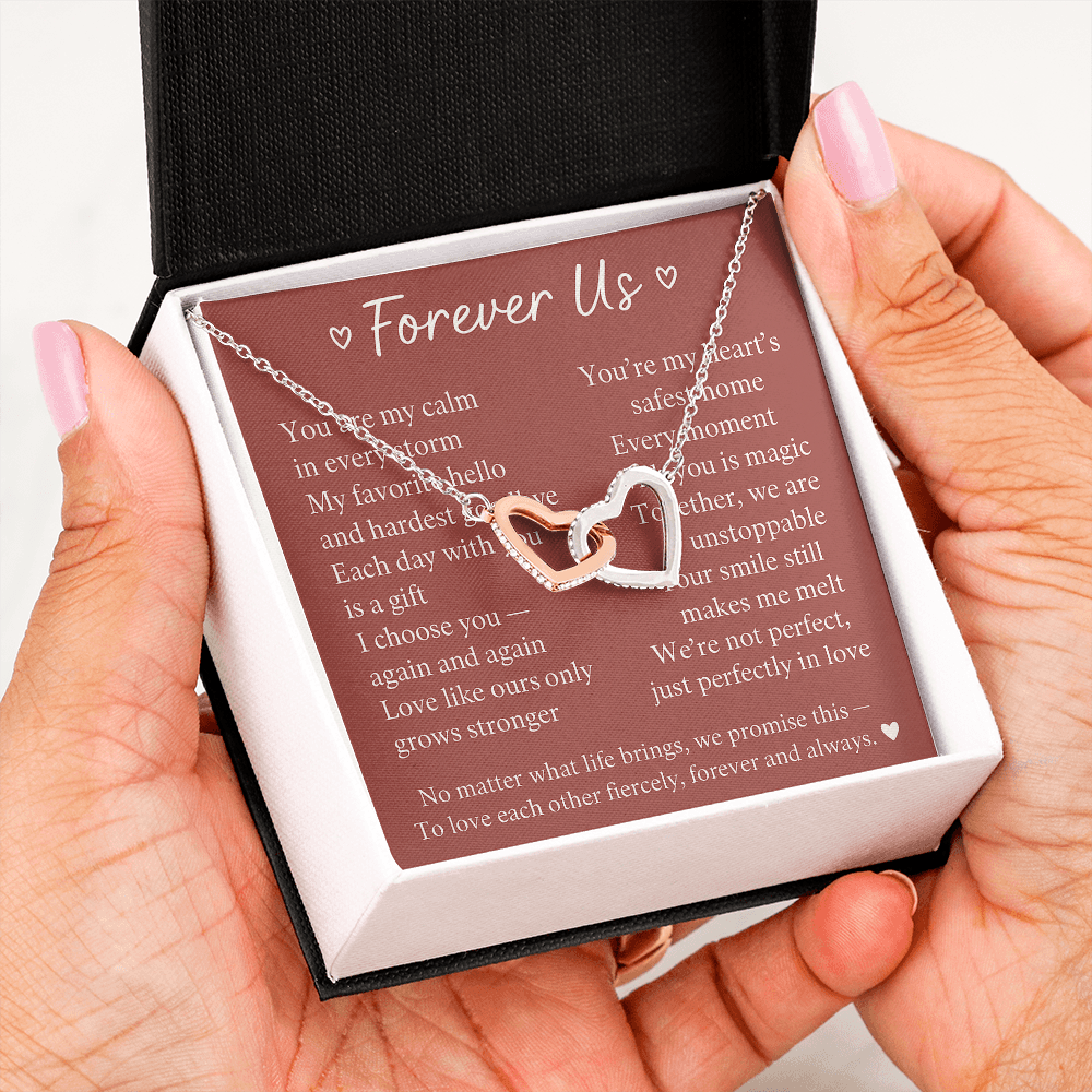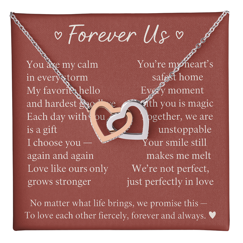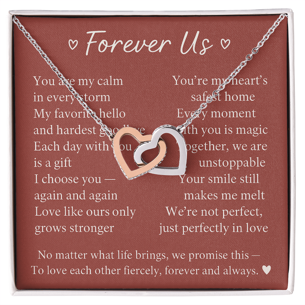Give her the gift that symbolizes your never-ending love. Featuring two lovely hearts embellished with cubic zirconia crystals, this Interlocking Hearts necklace is the perfect accessory for everyday wear. Whether it's a memorable anniversary or a special birthday, make sure to dazzle your special someone by gifting them this stunning necklace.