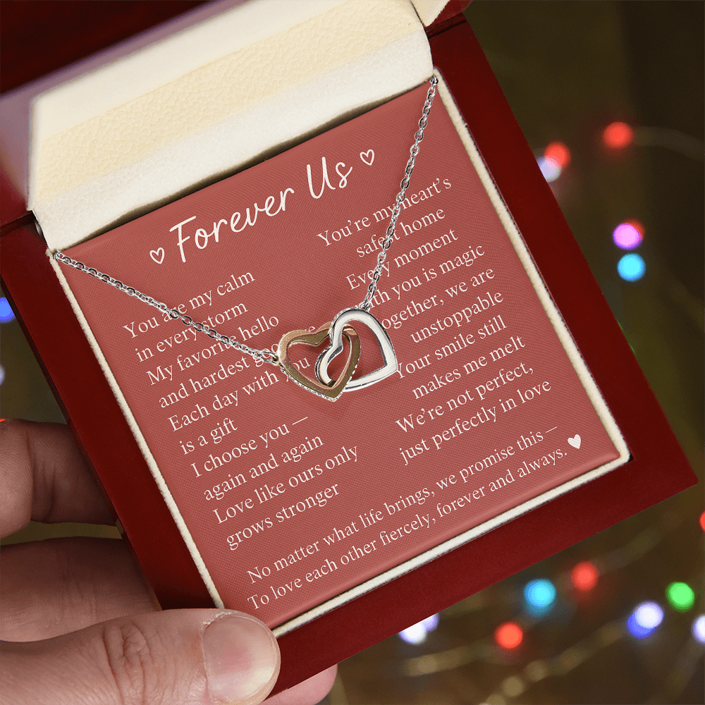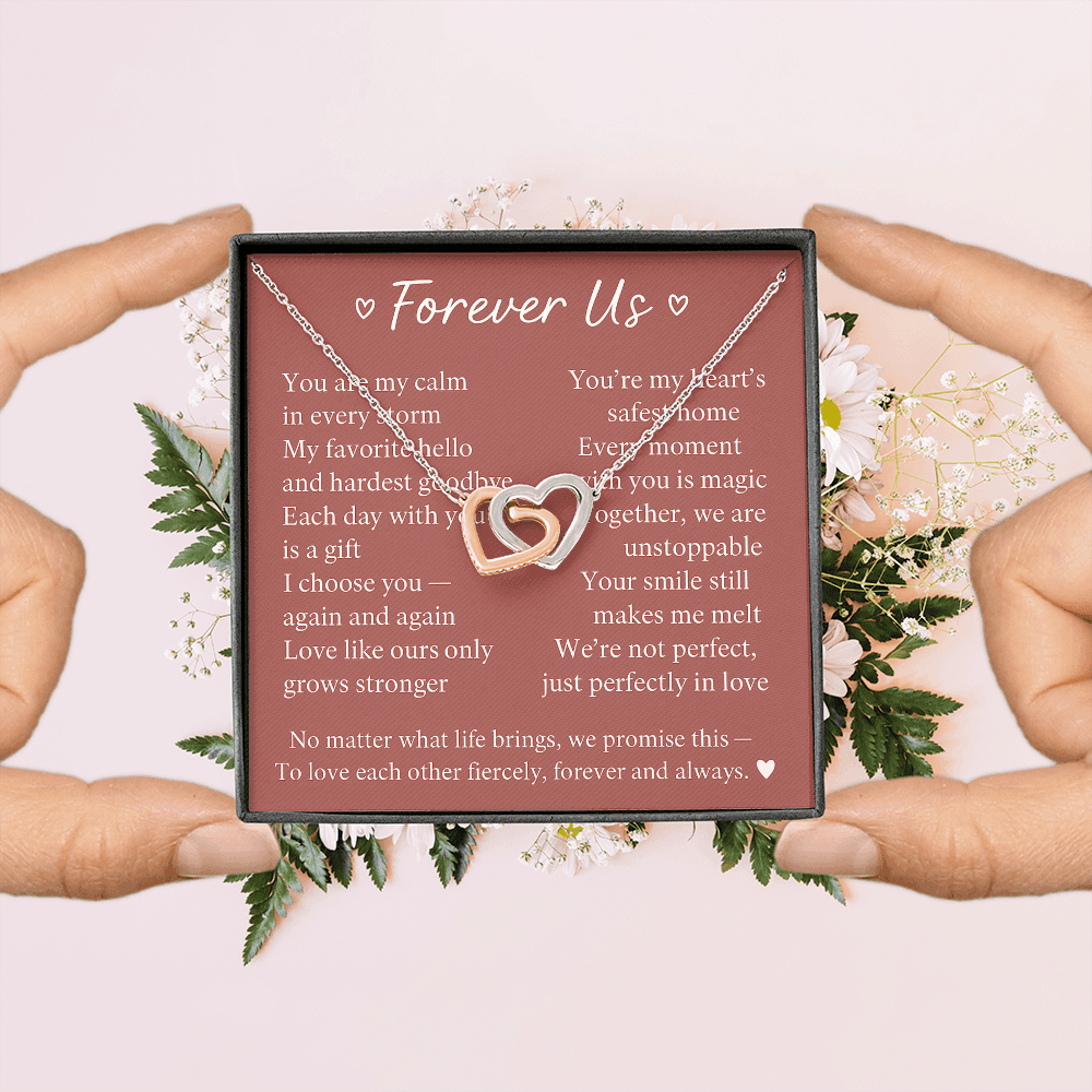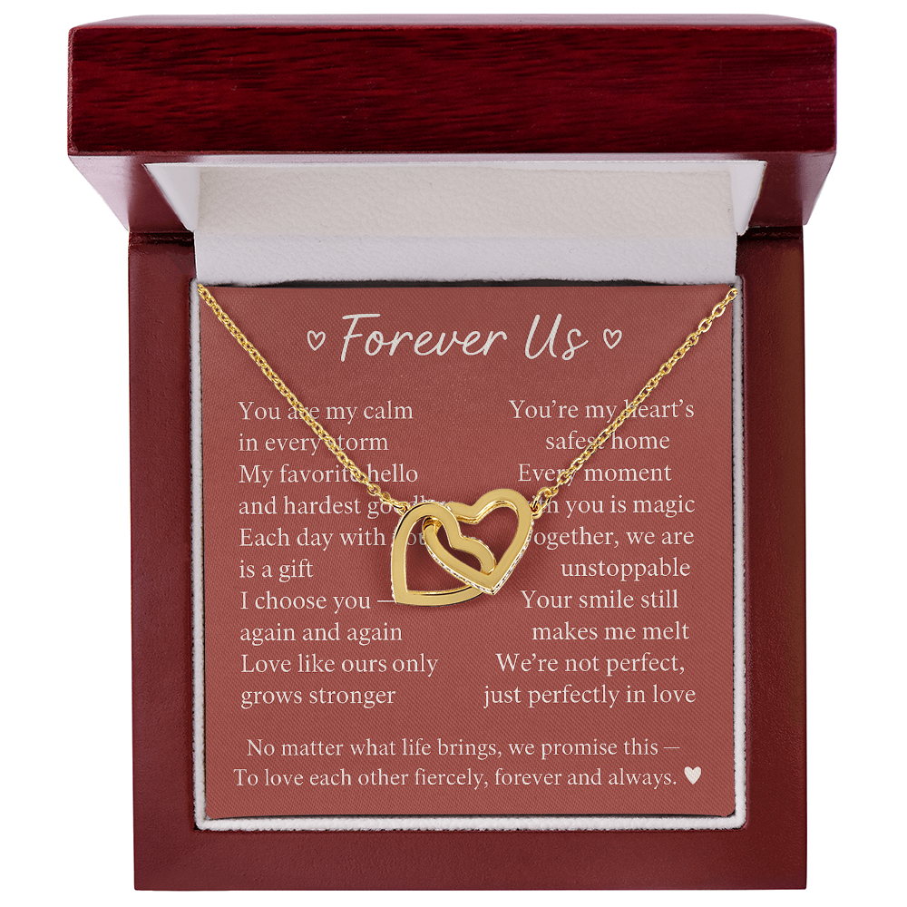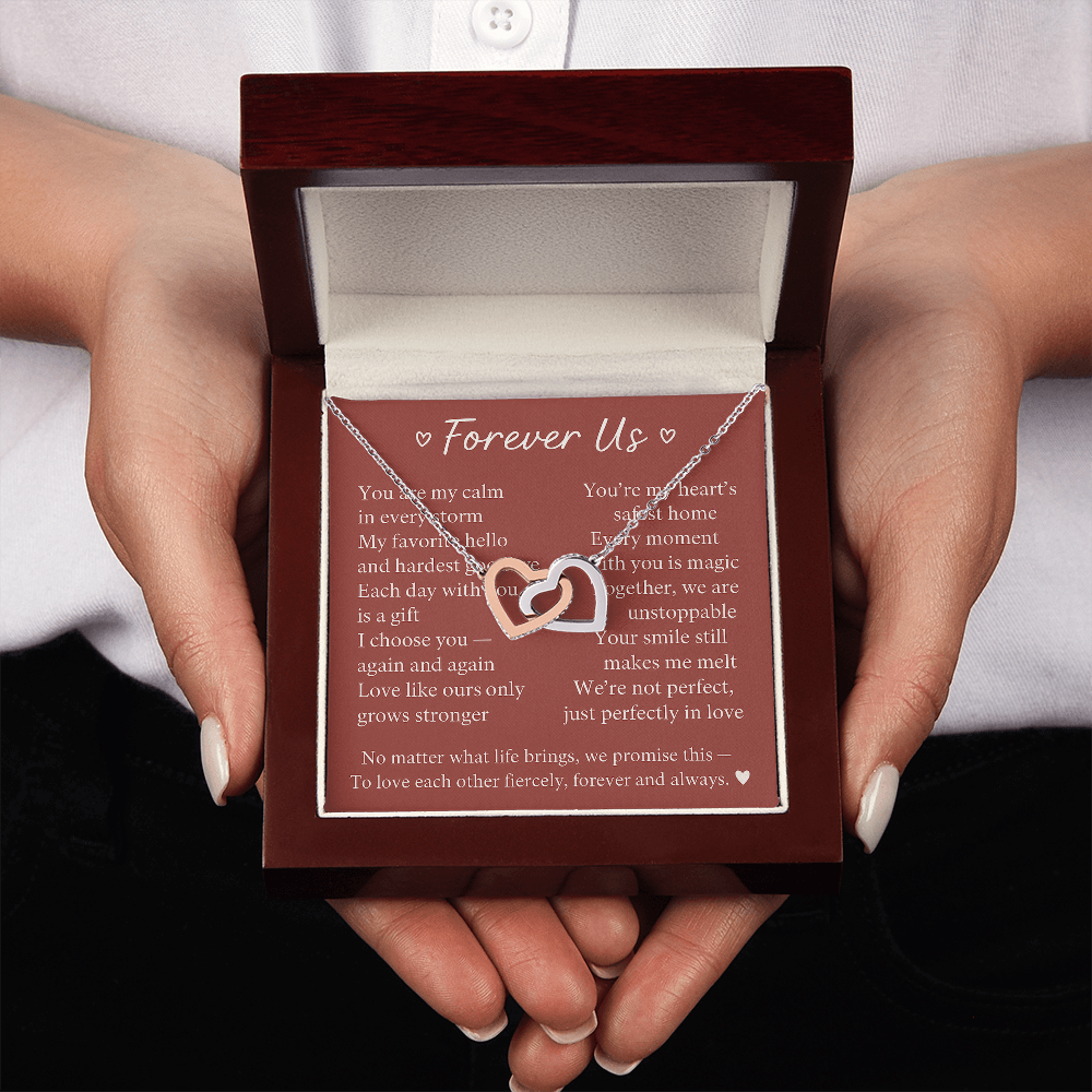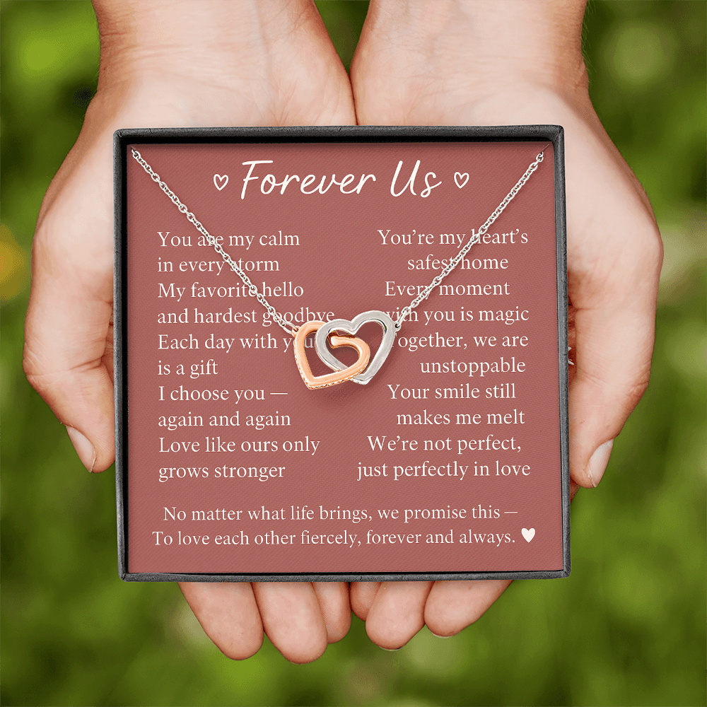 Give her the gift that symbolizes your never-ending love. Featuring two lovely hearts embellished with cubic zirconia crystals, this Interlocking Hearts necklace is the perfect accessory for everyday wear. Whether it's a memorable anniversary or a special birthday, make sure to dazzle your special someone by gifting them this stunning necklace.