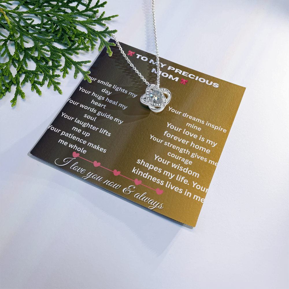 Imagine her reaction receiving this beautiful Love Knot Necklace. Representing an unbreakable bond between two souls, this piece features a beautiful pendant embellished with premium cubic zirconia crystals. Surprise your loved one with this gorgeous gift today!