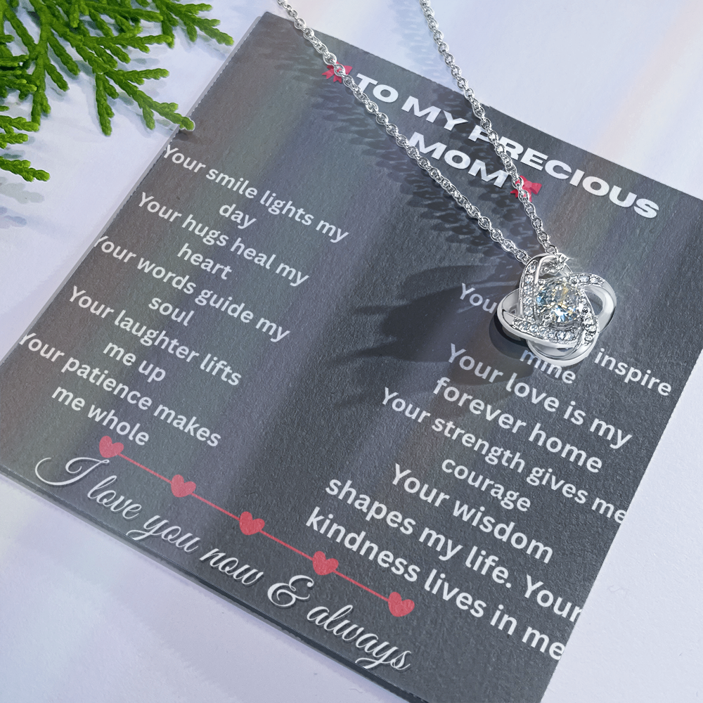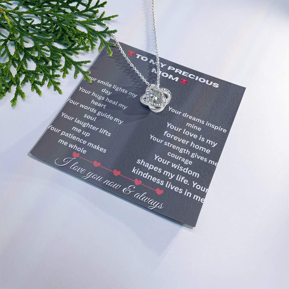 Imagine her reaction receiving this beautiful Love Knot Necklace. Representing an unbreakable bond between two souls, this piece features a beautiful pendant embellished with premium cubic zirconia crystals. Surprise your loved one with this gorgeous gift today!