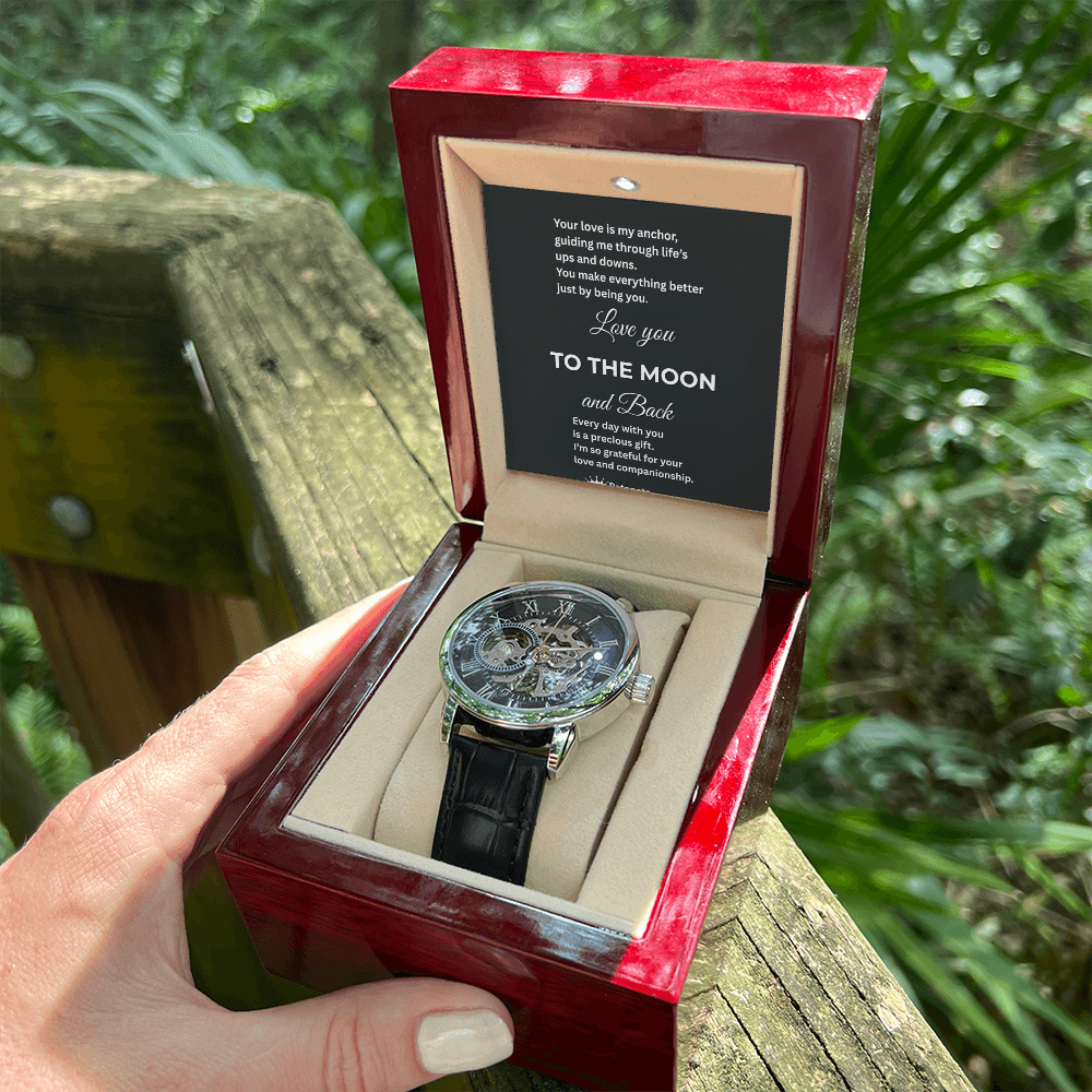Your watch is lovingly packaged in our mahogany style luxury box for easy gifting.